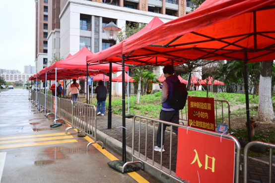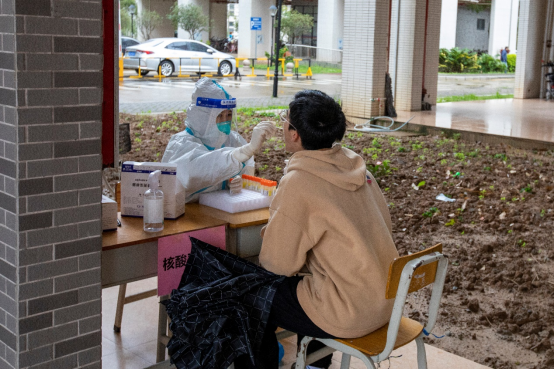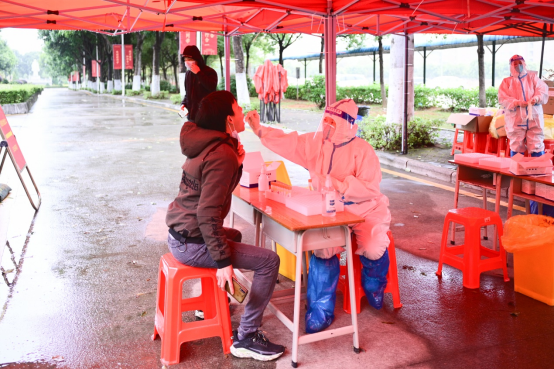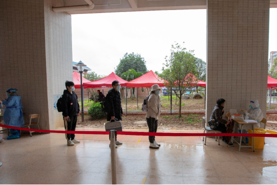 虽然近日穗莞两地气温骤降,医护人员坚守岗位在寒风中为同学们采集核酸,共同构筑平安校园。
