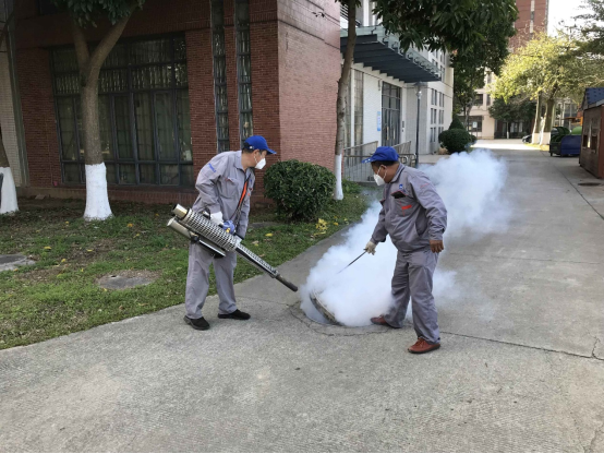 总务处安排专业消杀团队,对校园公共区域进行了全范围覆盖的“除四害”、消毒作业。