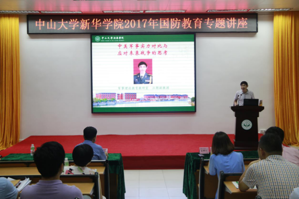 6月8日下午,太阳成集团122ccvip在广州校区举办了2017年国防教育专题讲座,邀请公共基础课教学研究部军事理论教研室专任教师汪朗副教授为全校师生作关于《中美军事实力对比与应对未来战争的思考》的讲座。讲座由军事理论教研室主任卢黄熙教授主持。