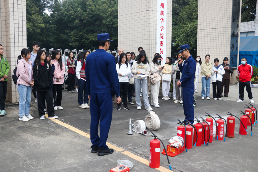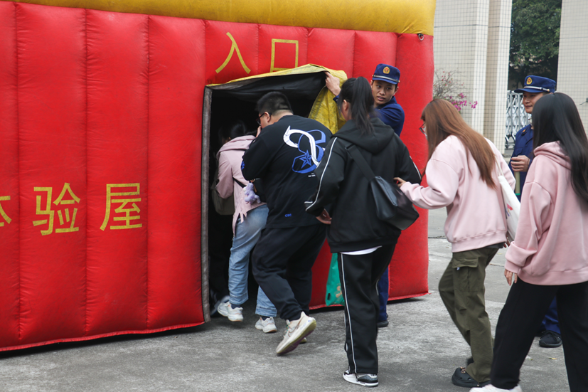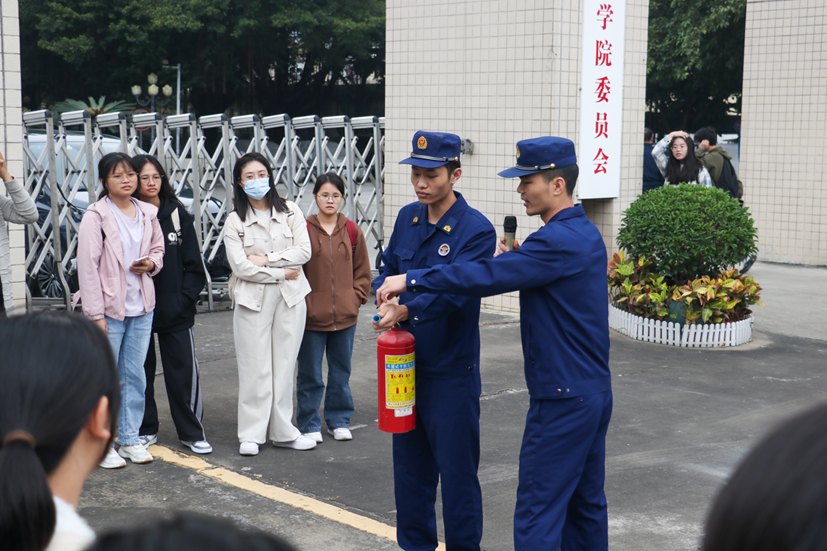 ▲龙凤消防救援站消防宣讲员组织现场师生进行逃生和灭火演练
