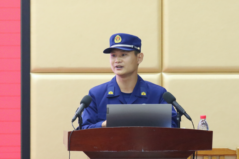 接着,龙凤消防救援站班长邓汉清为与会人员开展消防教育专题授课。他结合自身多年来的工作经验,围绕消防基本知识、发生火灾时的正确做法、消防器材的使用、预防火灾的措施等四个方面,依据详实的案例分析和深刻的经验总结进行了详细讲解。他指出,我们在加强日常工作管理和阶段情况总结的同时,要真正筑牢“防范于未然”的安全意识,做到防治结合。