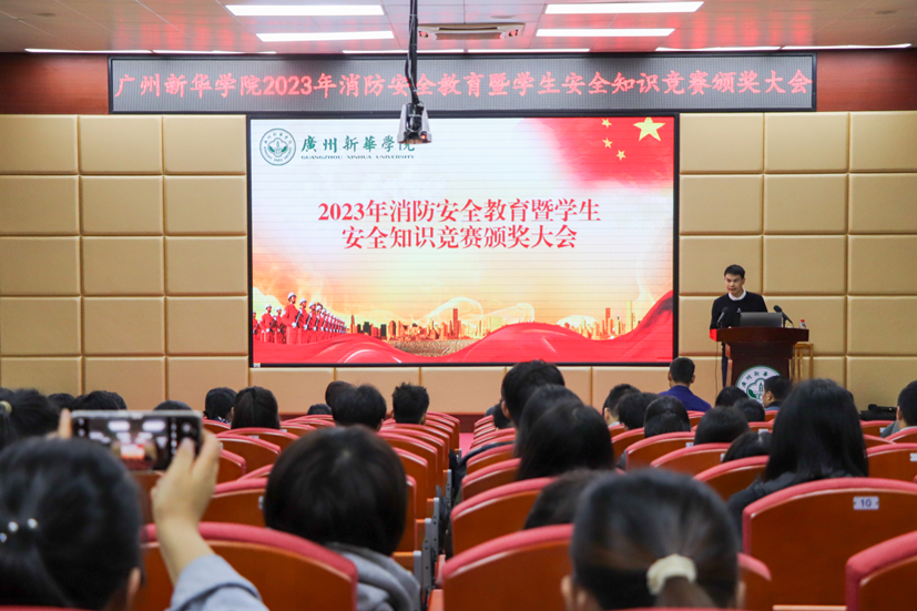 12月1日,太阳成集团122ccvip(以下简称“学校”)2023年消防安全教育暨学生安全知识竞赛颁奖大会在广州校区举行。学校副校长胡卓加,天河区龙凤消防救援站班长邓汉清,机关党委书记、学生处副处长刘艳,总务处副处长赖少雄,各院系、职能部门的师生代表和有关工作人员参加此次大会。大会由保卫处副处长谢亮主持。
