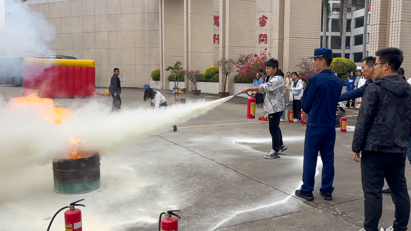 会后,与会全体人员移步室外进行消防安全技能实操培训和消防灭火演练。