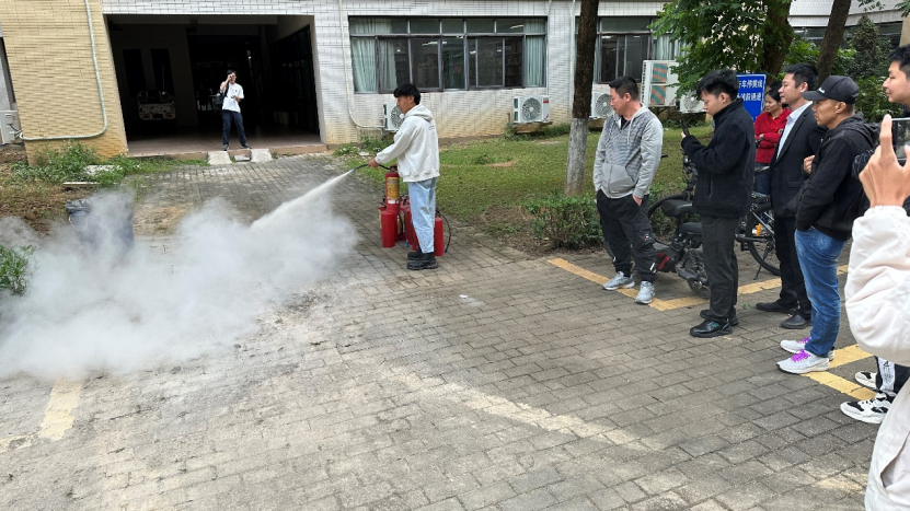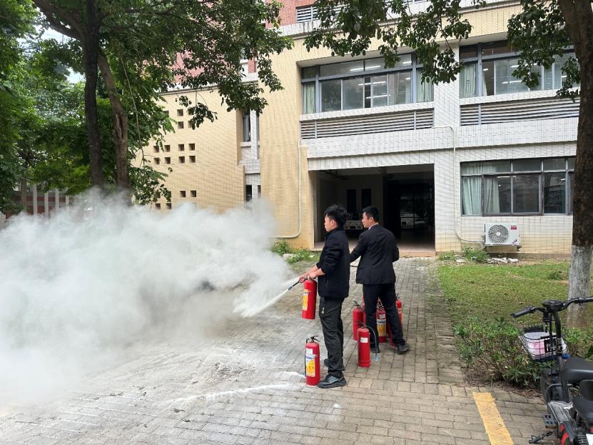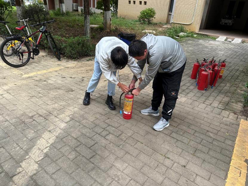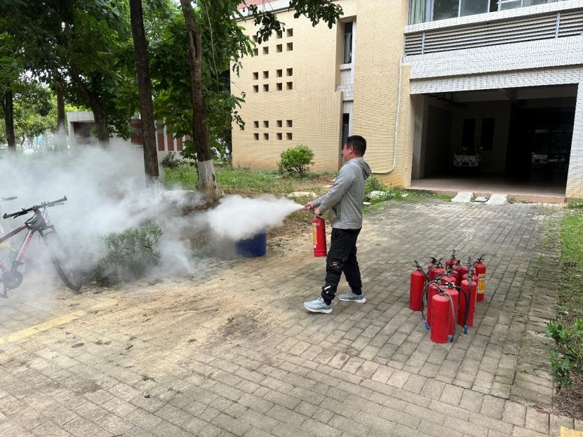 为进一步了解消防基础知识、增强学生自我保护能力,在培训结束后保卫处还组织了一次演练实操。实操环节,参培人员分组轮番体验使用灭火器,“提、喷、关”等动作干脆利落,在实践中熟练掌握了灭火技能。