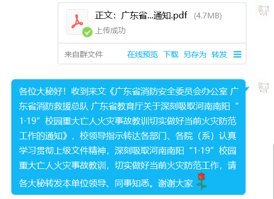 1月21日,我处积极转发“广东教育”、“广东应急管理”等官方账号发布的关于消防安全提醒推文,并落实转发学校师生员工学习了解,提升安全防范意识和能力。