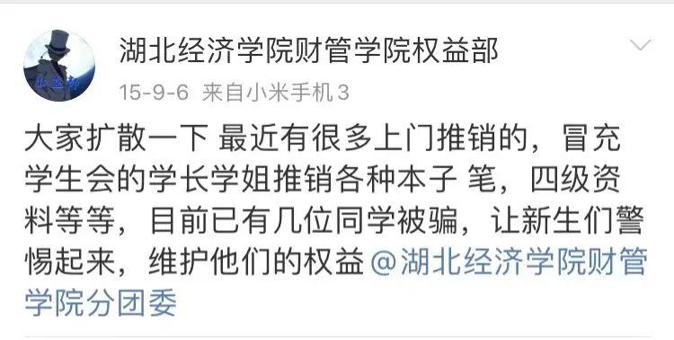 在新生开学期间,一些不良商贩伪装成学长学姐,向学生推荐与生活学习息息相关的产品。这些产品多半都存在质量问题,一旦售出就很难再联系上推销者。