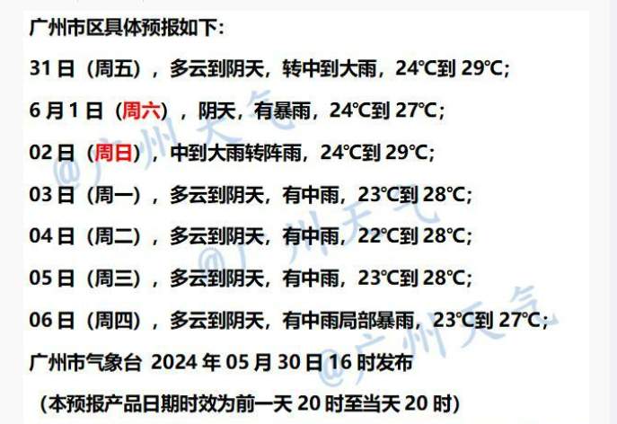 预计,5月31日至6月1日受热带低压北上影响,广州有一次暴雨天气过程。